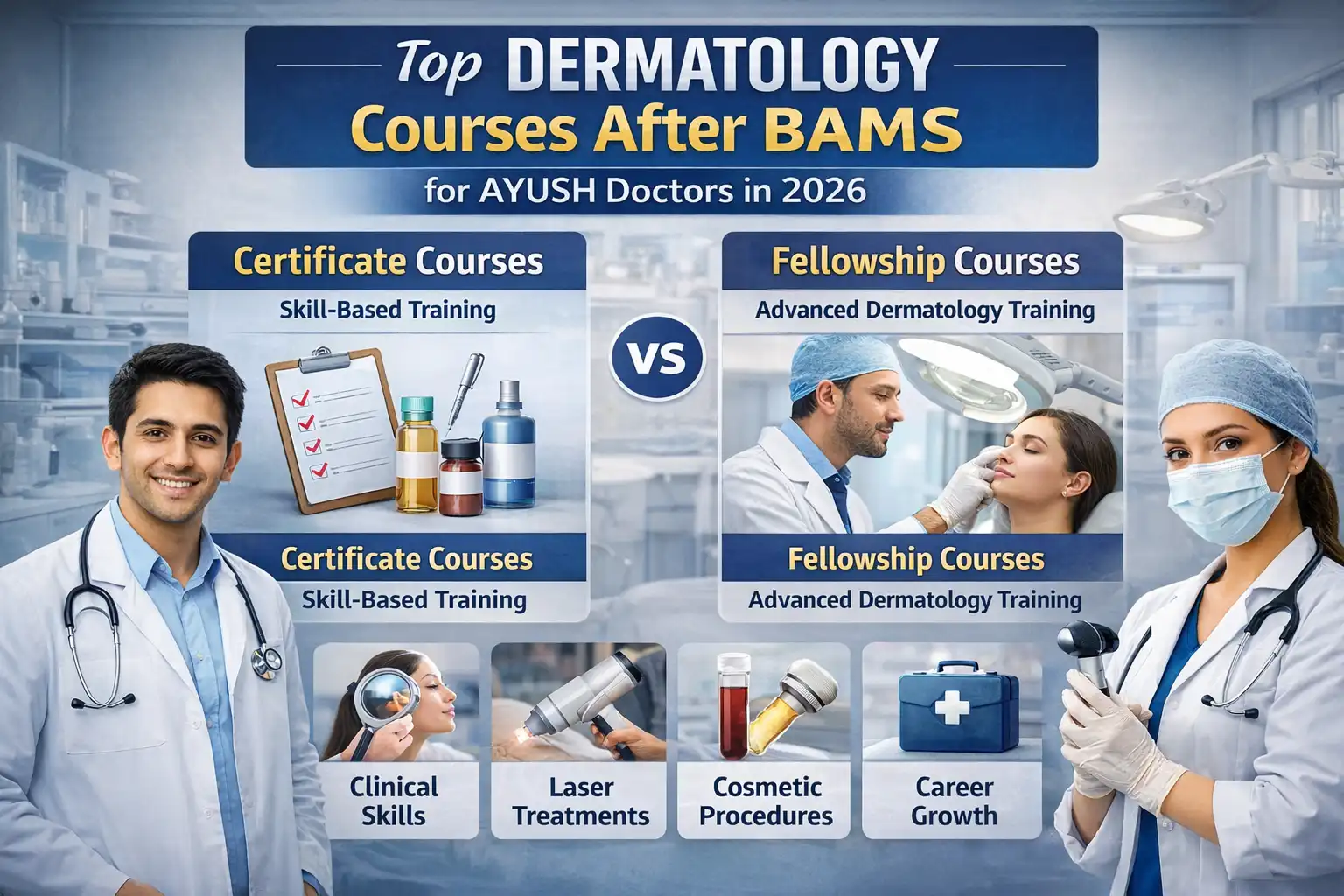 These programs are popular with Indian BAMS and BHMS graduates, interns, and students in their final year who want to add ayurvedic dermatology after BAMS to their skills. The easy-to-follow curriculum covers both ancient and modern solutions, so you are well-prepared for a real-world clinical career. You get plenty of practice and mentorship to boost your confidence and start offering in-demand treatments as soon as you finish.